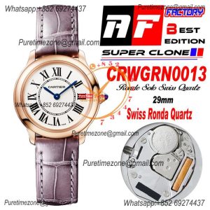 Ronde Louis Medium WGRN0012 Swiss Quartz Womens Watch Best Edition AF 36mm RG White Dial Purple Leather Strap