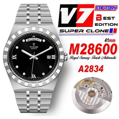 Home Tudor Royal M28600 A2834 Automatic Mens Watch Best Edition V7F 41mm Black Diamonds Dial Stainless Steel Bracelet CHS
