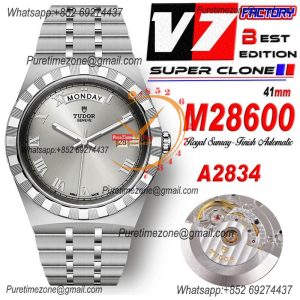 Royal M28600 A2834 Automatic Mens Watch Best Edition V7F 41mm Silver Roman Dial Stainless Steel Bracelet CHS $576.00 $480.00