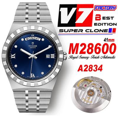 Home Tudor Royal M28600 A2834 Automatic Mens Watch Best Edition V7F 41mm Blue Diamonds Dial Stainless Steel Bracelet CHS