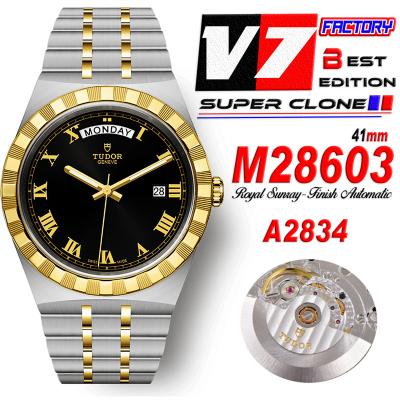 Home Tudor Royal M28603 A2834 Automatic Mens Watch Best Edition V7F 41mm YG Black Roman Dial Stainless Steel Bracelet CHS