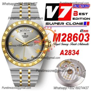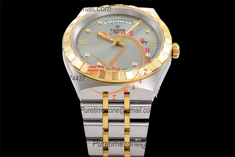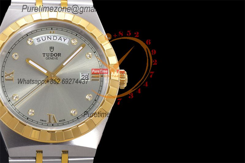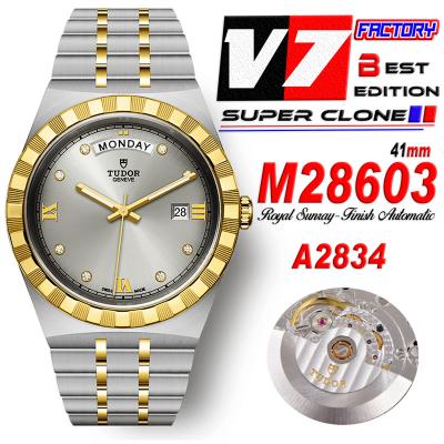 Home Tudor Royal M28603 A2834 Automatic Mens Watch Best Edition V7F 41mm YG Silver Diamonds Dial Stainless Steel Bracelet CHS