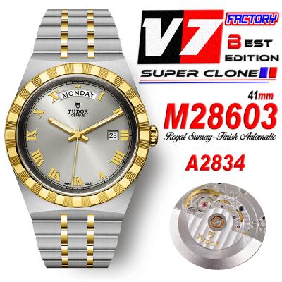 Home Tudor Royal M28603 A2834 Automatic Mens Watch Best Edition V7F 41mm YG Silver Roman Dial Stainless Steel Bracelet CHS