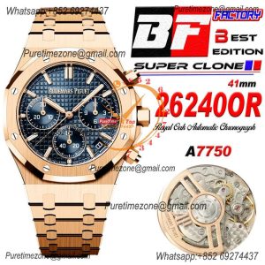 Royal Oak 26240OR A7750 Automatic Chronograph Mens Watch BF Best Edition RG Blue Dial SS Bracelet CHS