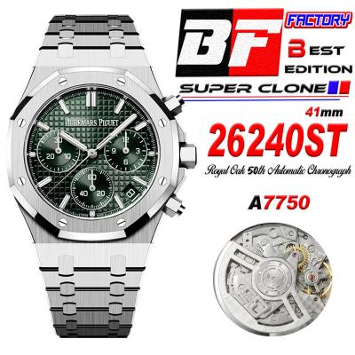 Home A+ P Royal Oak 26240ST A7750 Automatic Chronograph Mens Watch 50th Anniversary BF Best Edition Green Dial SS Bracelet CHS