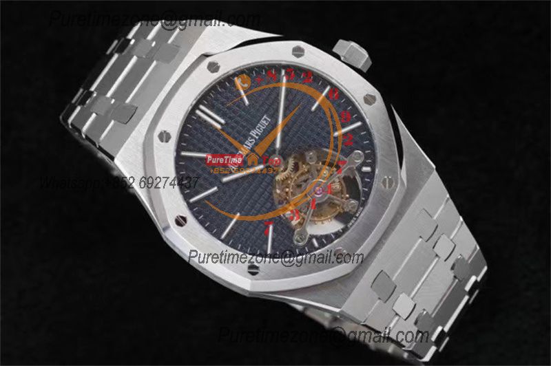 Home A+ P Royal Oak 26510 Extra Thin Hand Winding Tourbillon Mens Watch Best Edition R8F 41 Blue Dial SS Bracelet CHS