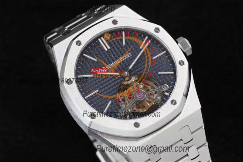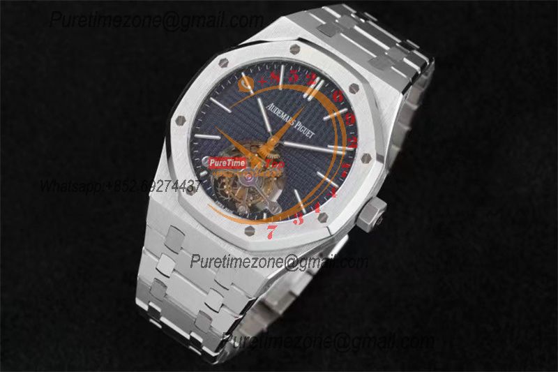 Royal Oak 26510 Extra Thin Hand Winding Tourbillon Mens Watch Best Edition R8F 41 Blue Dial SS Bracelet CHS