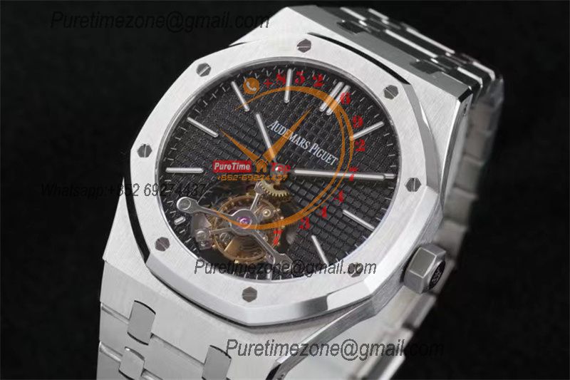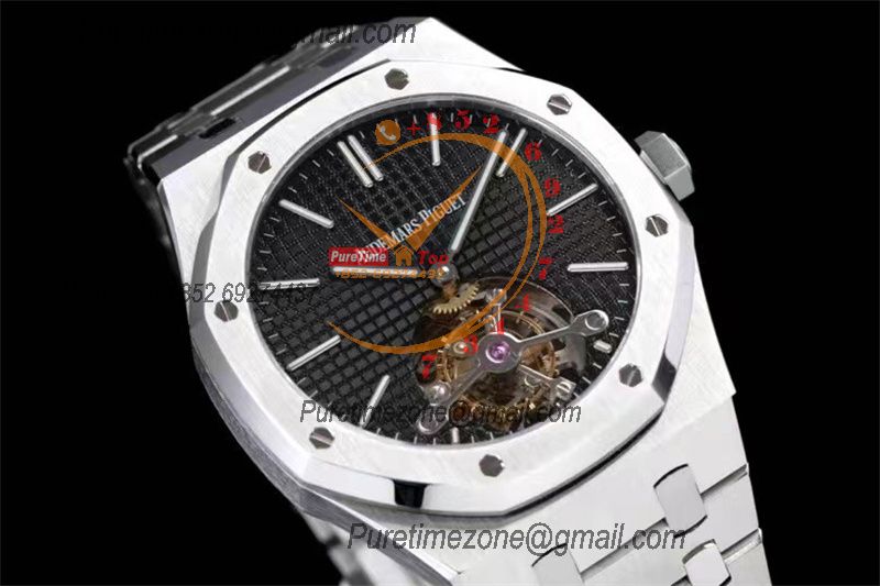Home A+ P Royal Oak 26512 Extra Thin Hand Winding Tourbillon Mens Watch Best Edition R8F 41 Black Dial SS Bracelet CHS