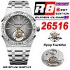 Royal Oak 26516 Extra Thin Hand Winding Tourbillon Mens Watch Best Edition R8F Diamonds Bezel Gray Dial SS Bracele