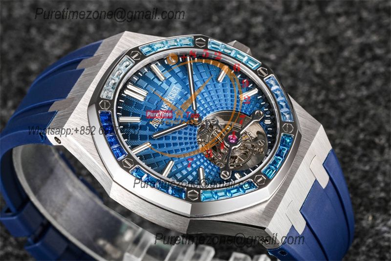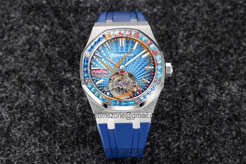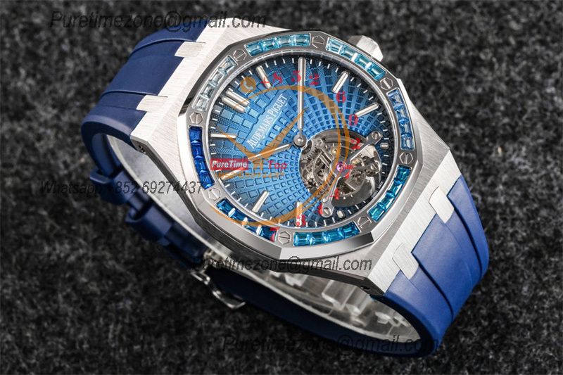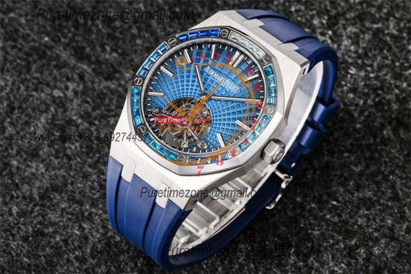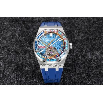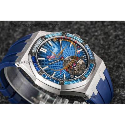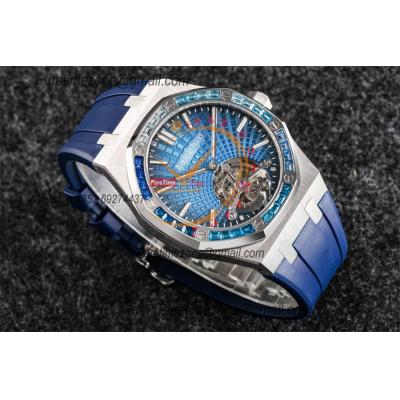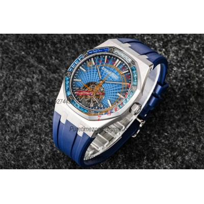 Royal Oak 26521 Extra Thin Automatic Tourbillon Mens Watch Best Edition R8F 42mm Diamond Bezel Blue Dial Rubber Strap