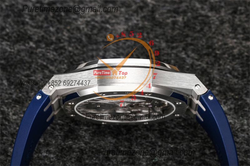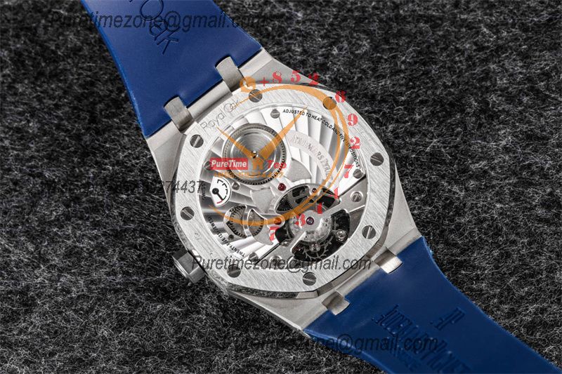 Royal Oak 26521 Extra Thin Automatic Tourbillon Mens Watch Best Edition R8F 42mm RG Blue Dial Rubber Strap CHS