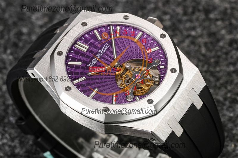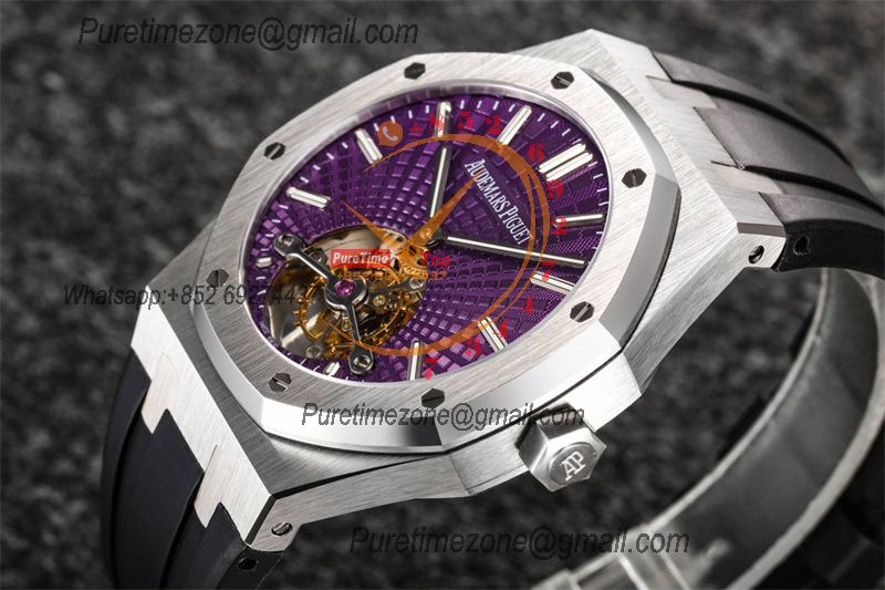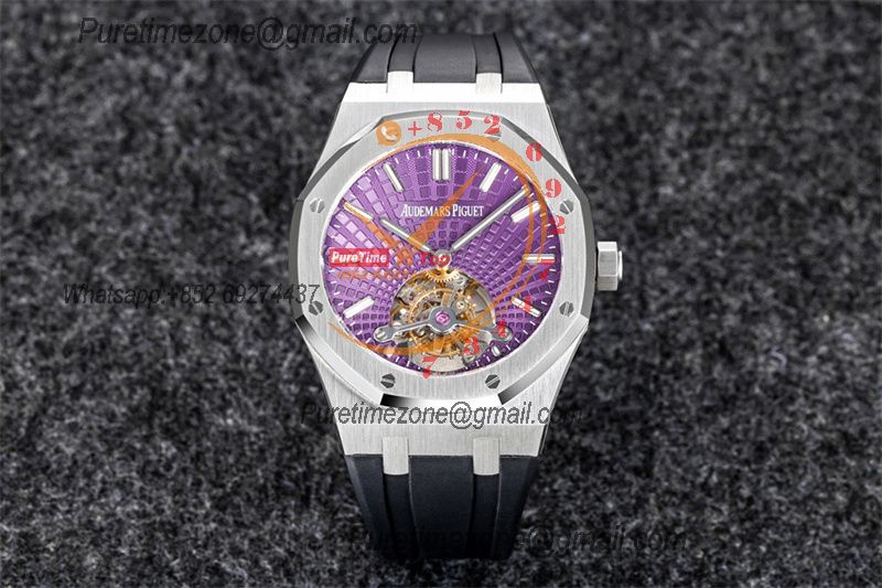 Home A+ P Royal Oak 26521 Extra Thin Automatic Tourbillon Mens Watch Best Edition R8F 42mm Purple Dial Rubber Strap CHS