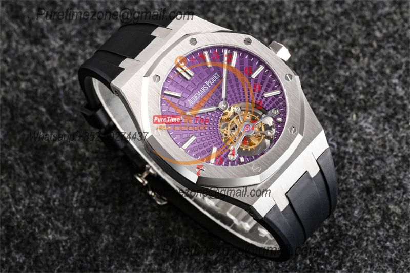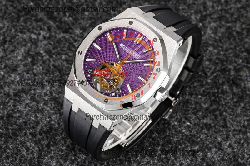 Royal Oak 26521 Extra Thin Automatic Tourbillon Mens Watch Best Edition R8F 42mm Purple Dial Rubber Strap CHS