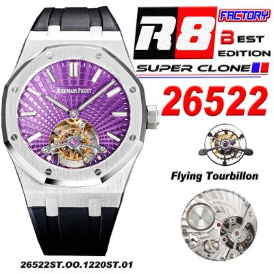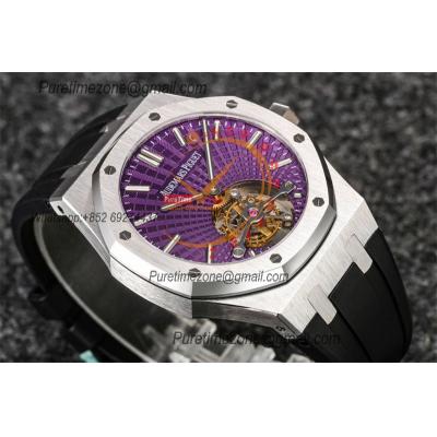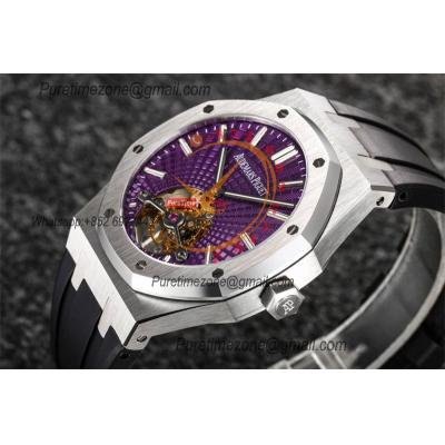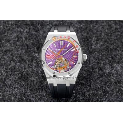 Royal Oak 26521 Extra Thin Automatic Tourbillon Mens Watch Best Edition R8F 42mm Purple Dial Rubber Strap CHS