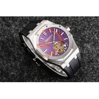 Home A+ P Royal Oak 26521 Extra Thin Automatic Tourbillon Mens Watch Best Edition R8F 42mm Purple Dial Rubber Strap CHS