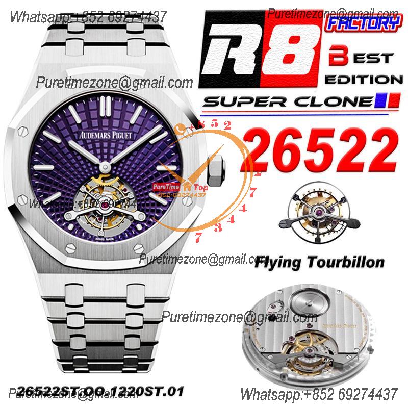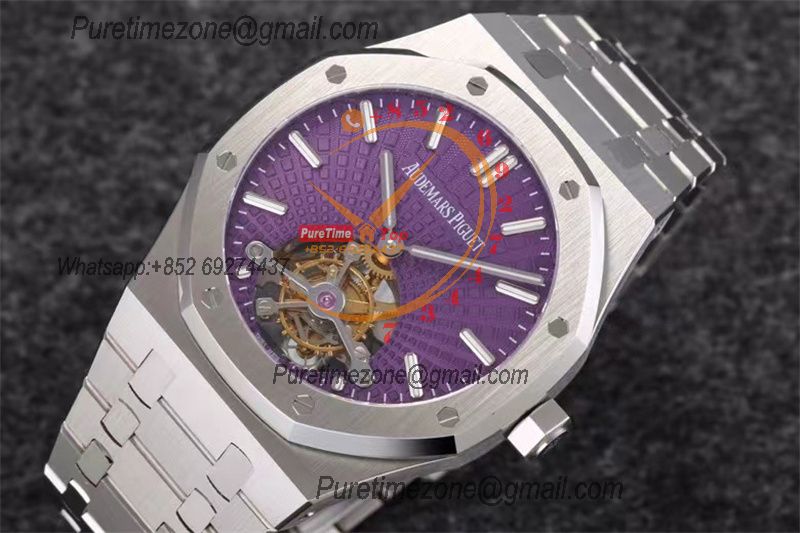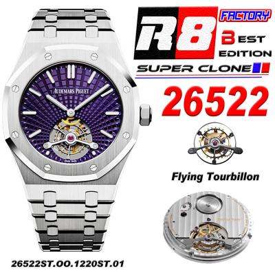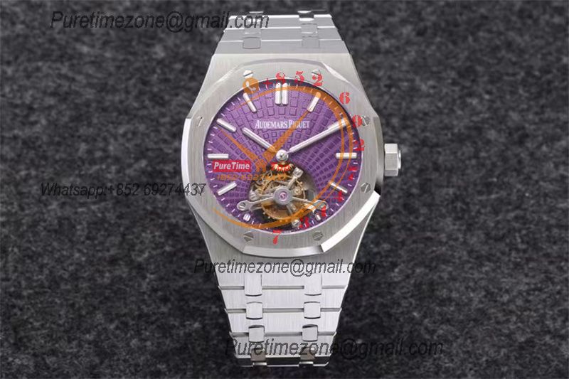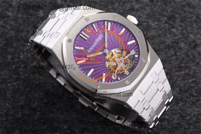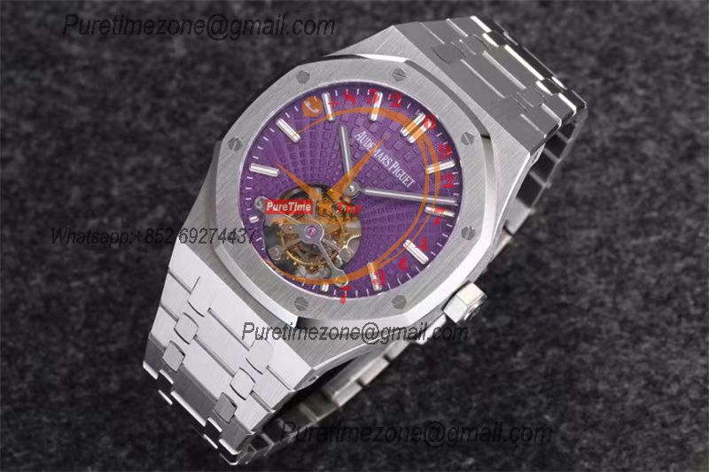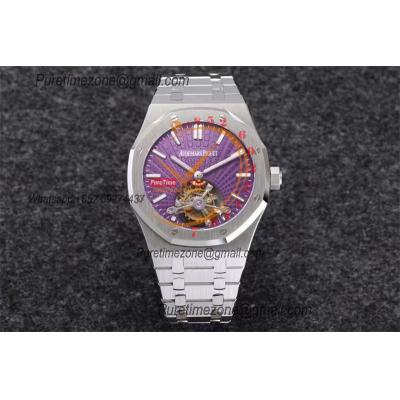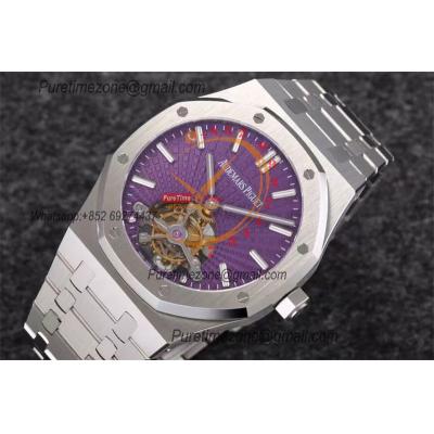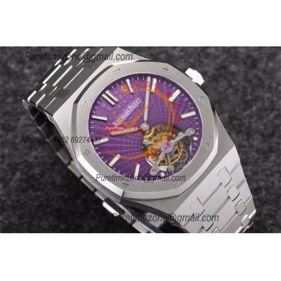 Royal Oak 26522 2018 SIHH Extra Thin Hand Winding Tourbillon Mens Watch Best Edition R8F 41 Purple Dial SS Bracelet