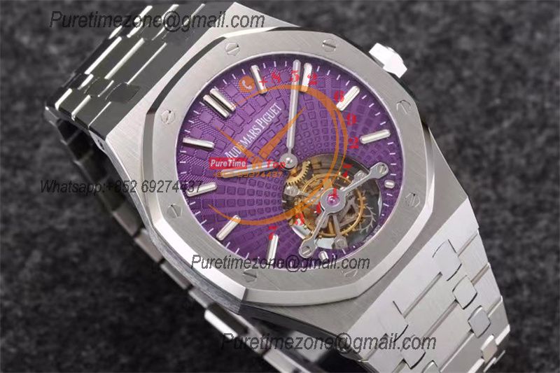 Home A+ P Royal Oak 26522 2018 SIHH Extra Thin Hand Winding Tourbillon Mens Watch Best Edition R8F 41 Purple Dial SS Bracelet