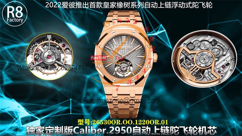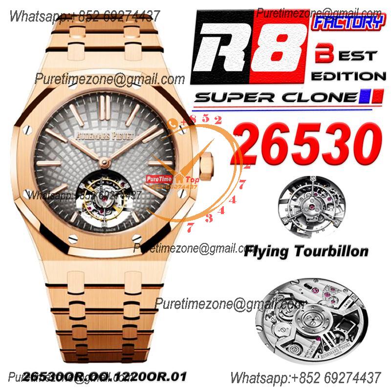 Royal Oak 26530 Extra Thin Automatic Tourbillon Mens Watch Best Edition R8F 42mm RG Gray Dial SS Bracele