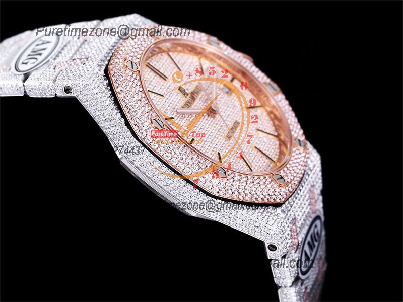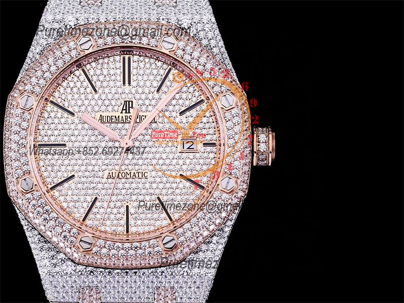 Bezel: Full paved diamonds/polished stainless steel bezel with recessed bezel screws