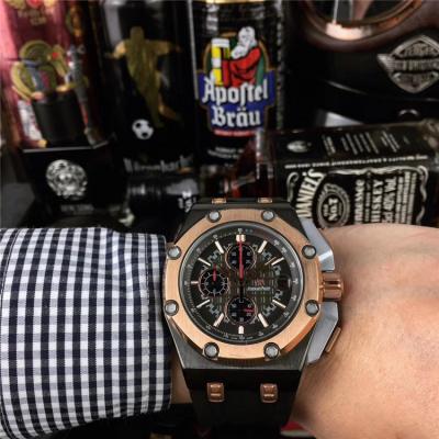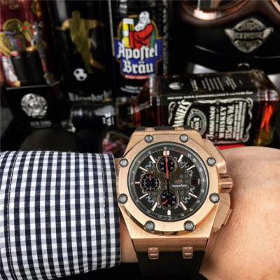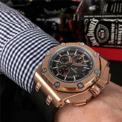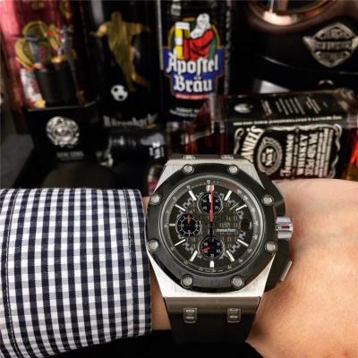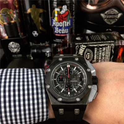 Home AAA-Brand Royal Oak Japan Quartz chronograph Movement Mens Watch Black Dial Rubber Strap E17