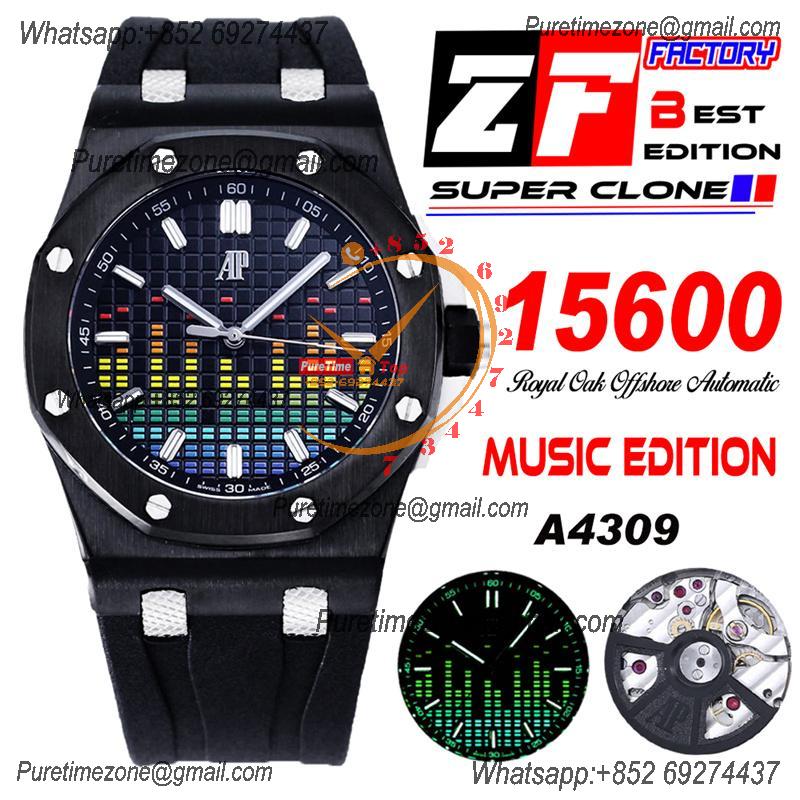 Royal Oak Offshore 15600 Music Edition A4309 Automatic Mens Watch Best Edition ZF Steel Case Black Dial Rubber Strap CHS