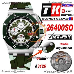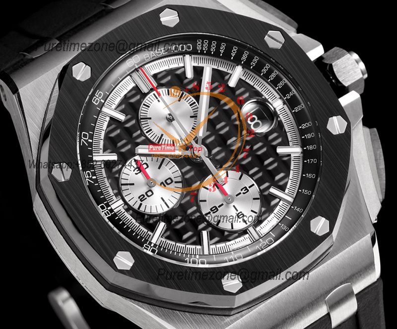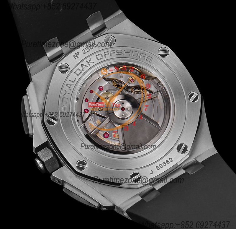 Movement:Base Movement: Asian 7750 automatic chronograph movement at 28800vph; Decoration: Platinum plated movement plate and rotor which are made according to the genuine movement, the best looking AP Calibre 3126 Movement Clone at the moment.