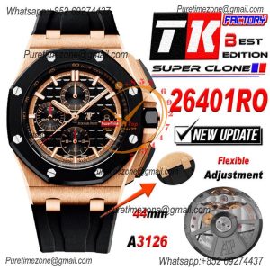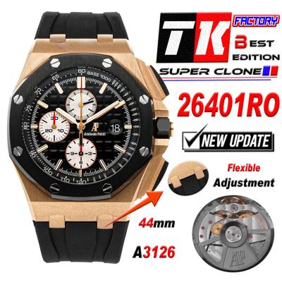 Royal Oak Offshore 26400RO A3126 Automatic Chronograph Mens Watch Best Edition TKF 44 RG Black Dial Rubber CHS