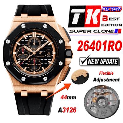 Royal Oak Offshore 26400RO A3126 Automatic Chronograph Mens Watch Best Edition TKF 44 RG Black Dial Rubber CHS