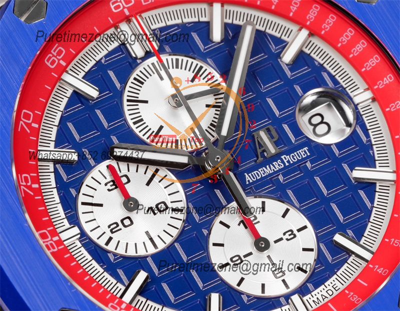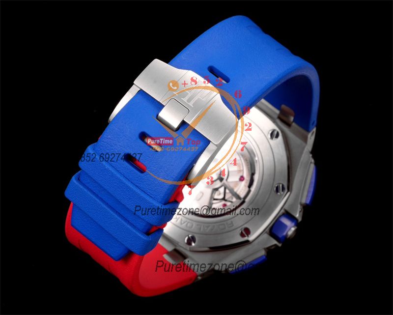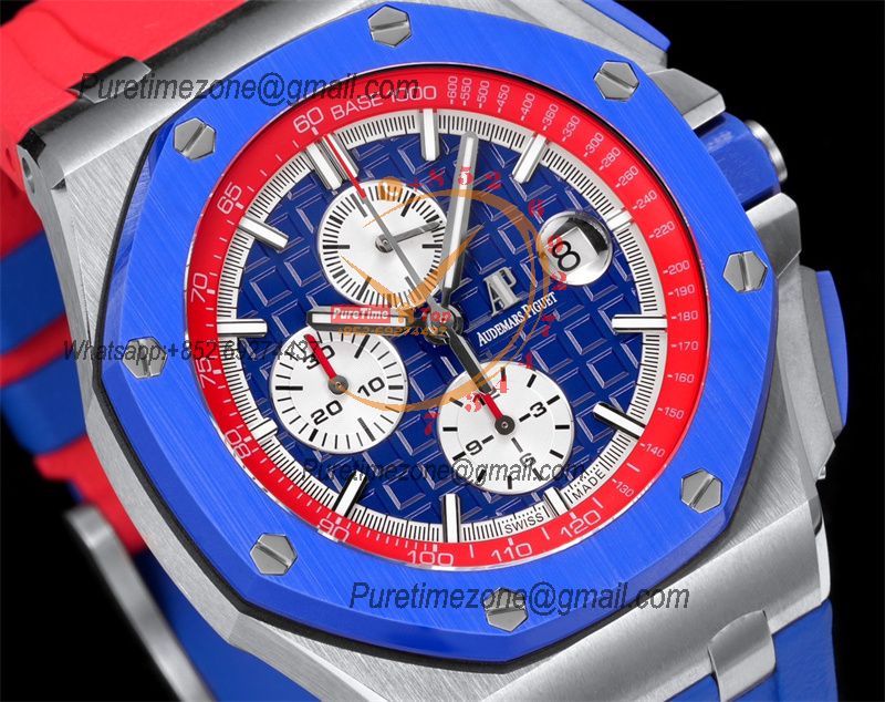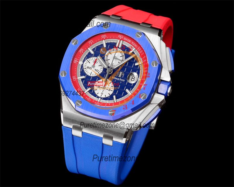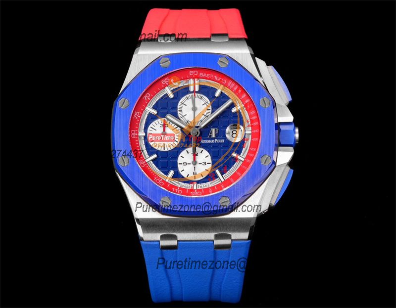 Royal Oak Offshore 26400SO A3126 Automatic Chronograph Mens Watch Best Edition TKF 44 Blue/Red Dial Rubber Strap CHS