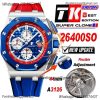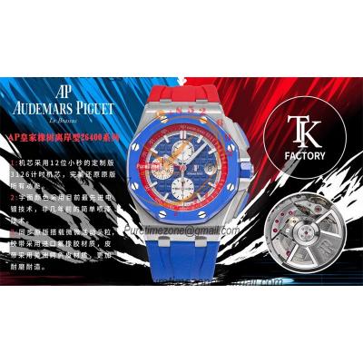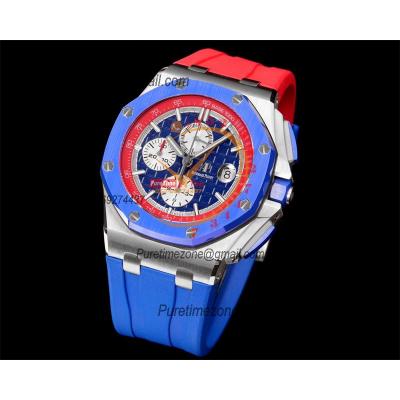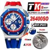 Royal Oak Offshore 26400SO A3126 Automatic Chronograph Mens Watch Best Edition TKF 44 Blue/Red Dial Rubber Strap CHS