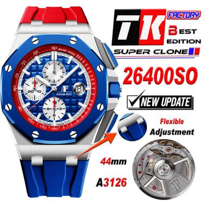 Home A+ P Royal Oak Offshore 26400SO A3126 Automatic Chronograph Mens Watch Best Edition TKF 44 Blue/Red Dial Rubber Strap CHS