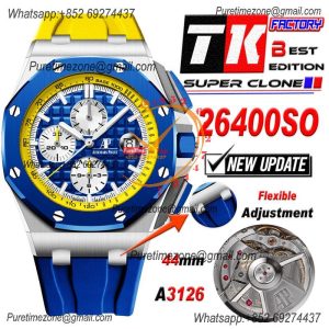 Royal Oak Offshore 26400SO A3126 Automatic Chronograph Mens Watch Best Edition TKF 44 Blue/Yellow Dial Rubber CHS $1,170.00 $780.00