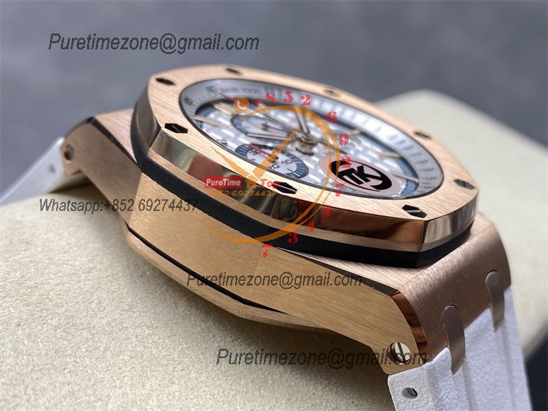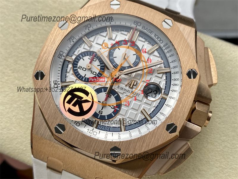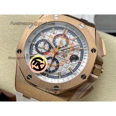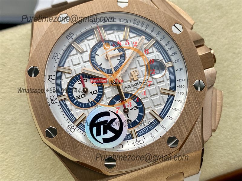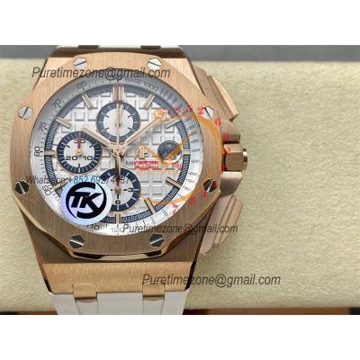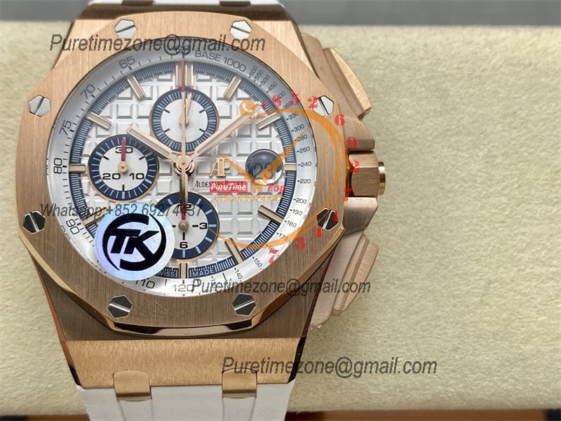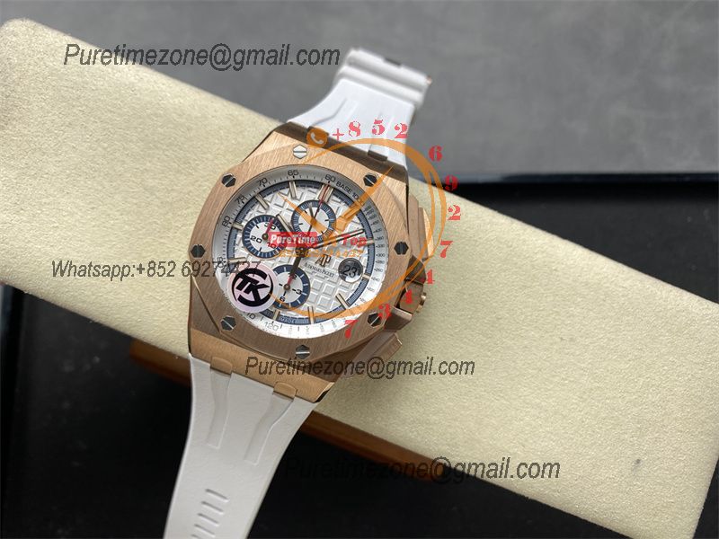 Royal Oak Offshore 26408OR A3126 Automatic Chronograph Mens Watch Best Edition TKF 44 RG White Dial Rubber CHS