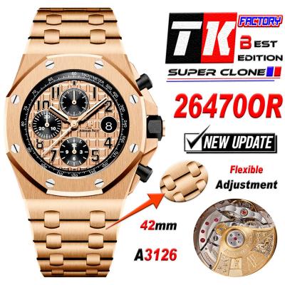 Royal Oak Offshore 26470OR A3126 Automatic Chronograph Mens Watch Best Edition TKF 42 RG Dial SS Bracelet CHS