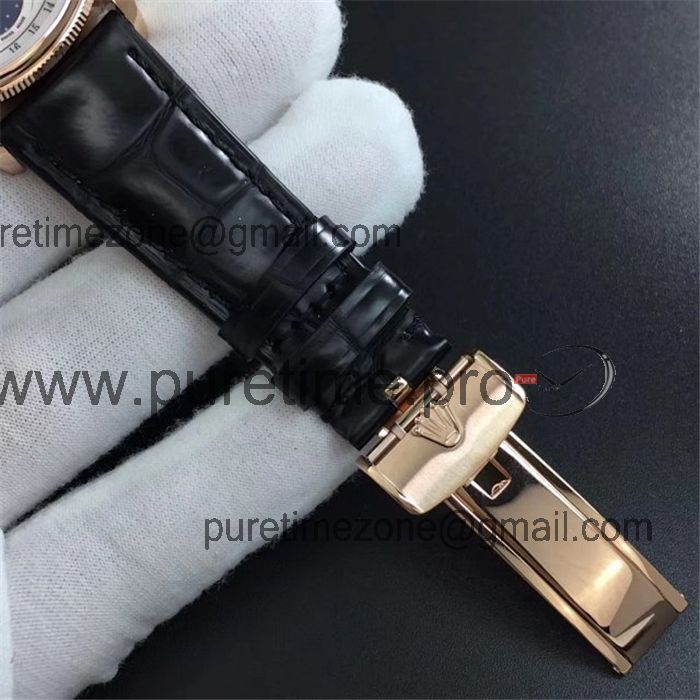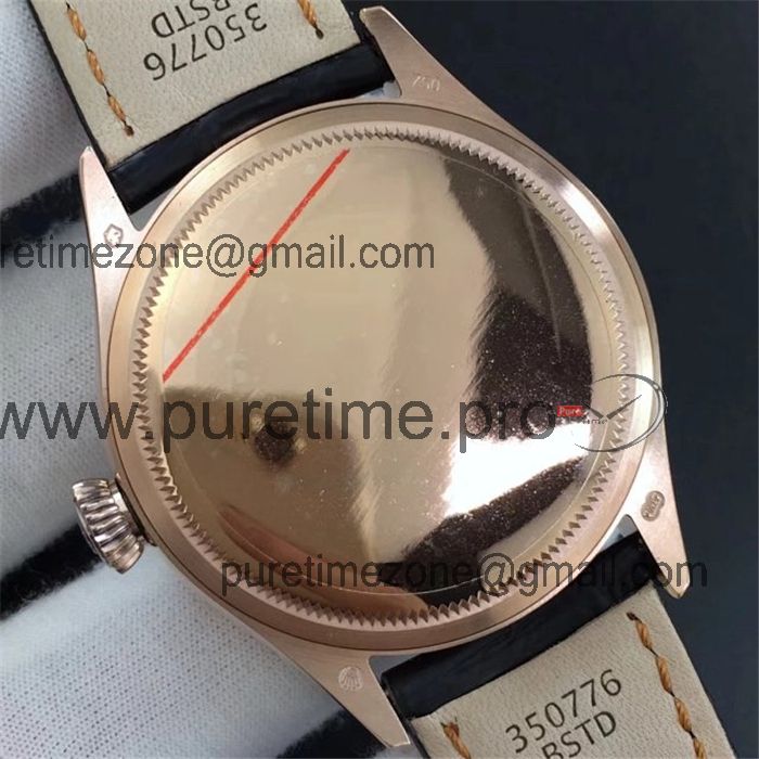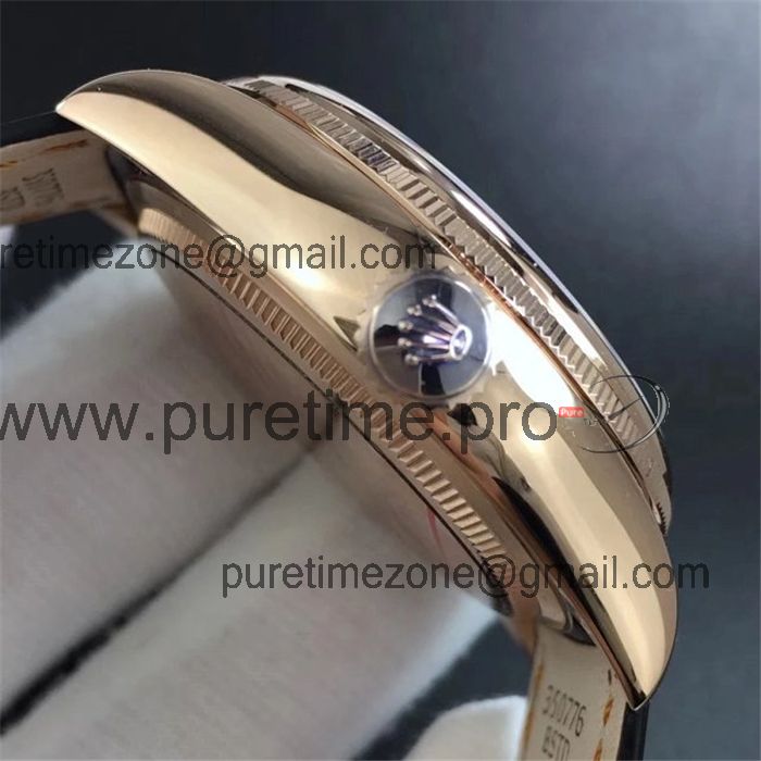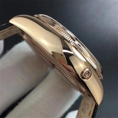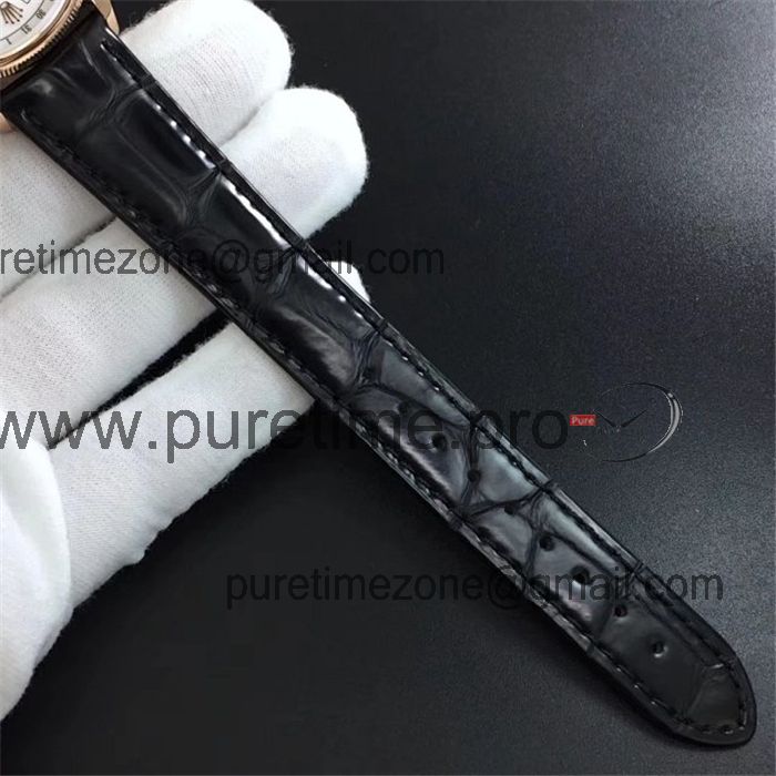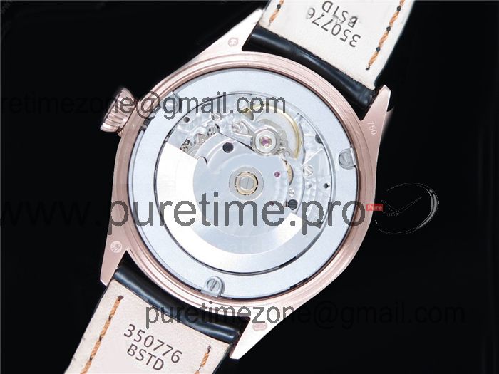 BSF Cellini Time 50505 A3132 Automatic Mens Watch Rose Gold Black Dial Leather Strap Best Edition