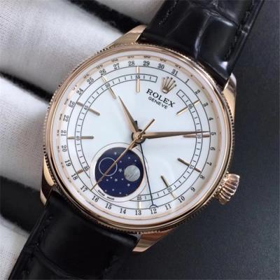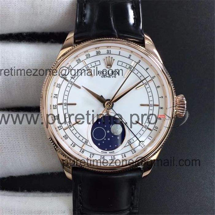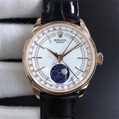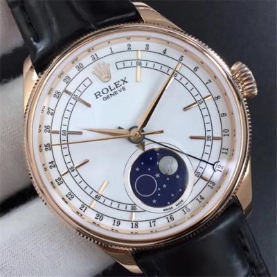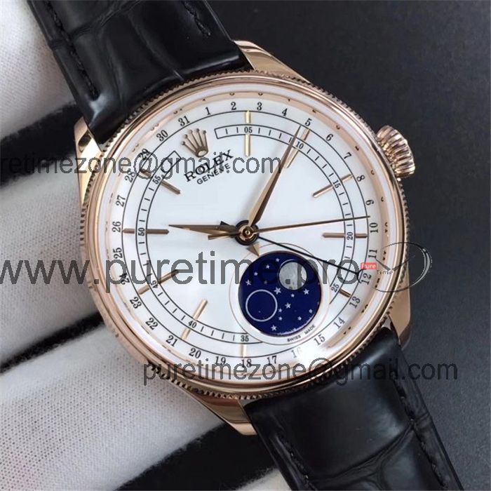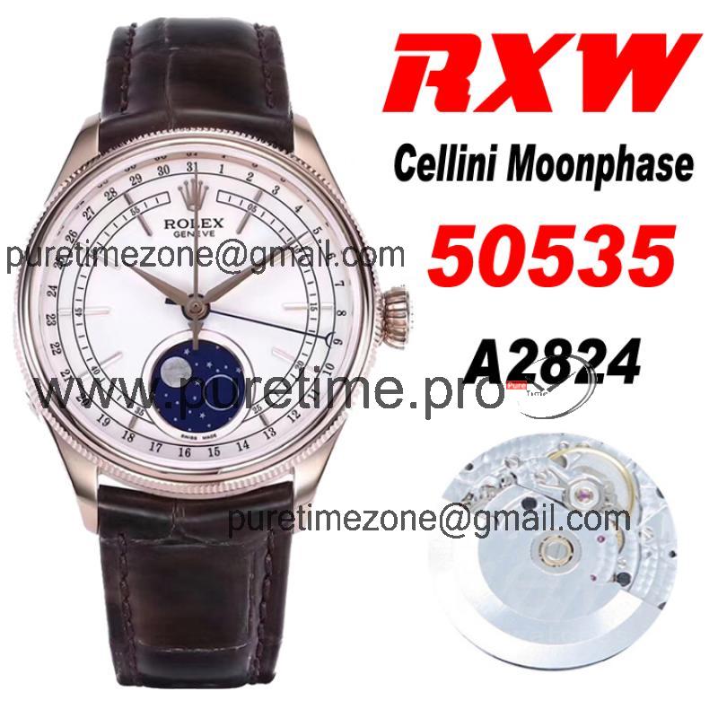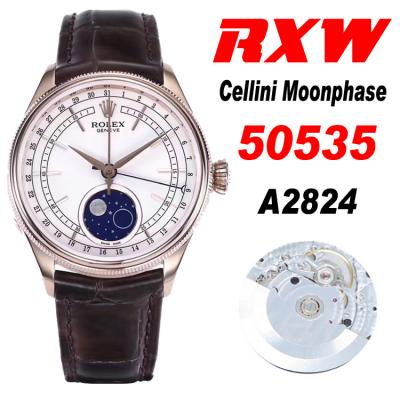 Home Rolex Cellini RXWF Cellini 50535 Moonphase A2824 Automatic Mens Watch RG White Dial Brown Leather Best Edition