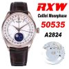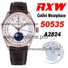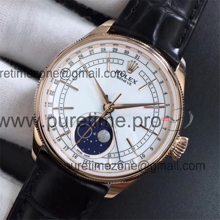 RXWF Cellini 50535 Moonphase A2824 Automatic Mens Watch RG White Dial Brown Leather Best Edition
