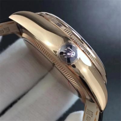 TWF Cellini Date 50515 A3165 Automatic Unisex Watch RG Black Dial Sticks Brown Leather Best Edition