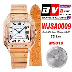 Santos WJSA0009 M9015 Automatic Ladies Watch Best Edition BVF Medium 35mm Diamonds Case RG White Dial SS Bracelet