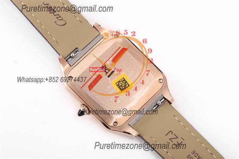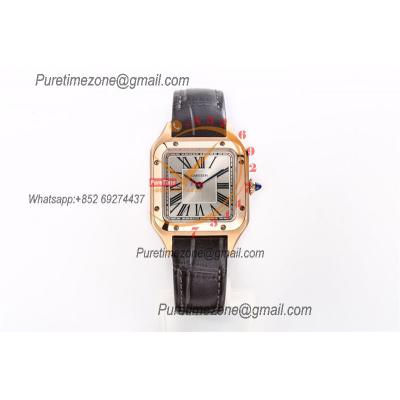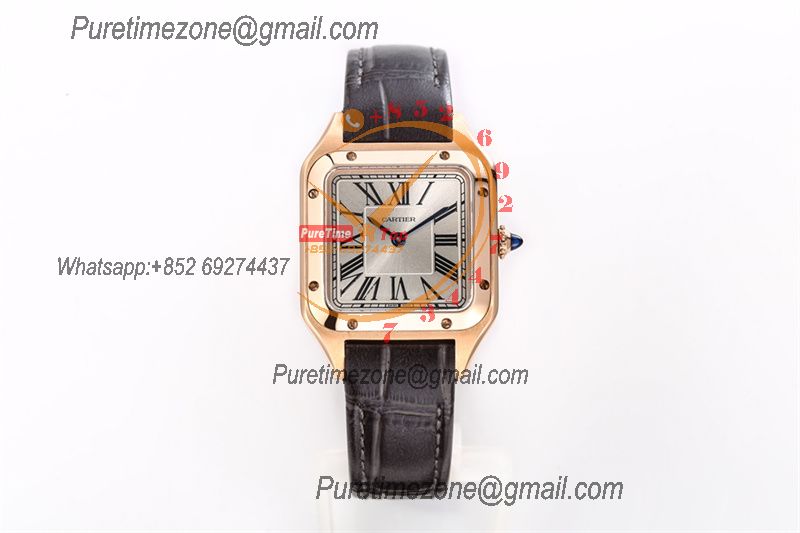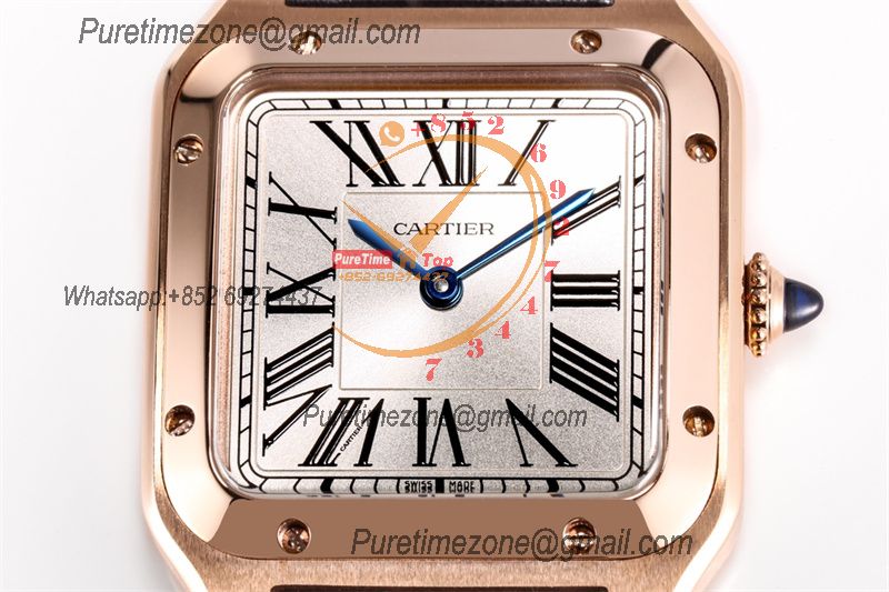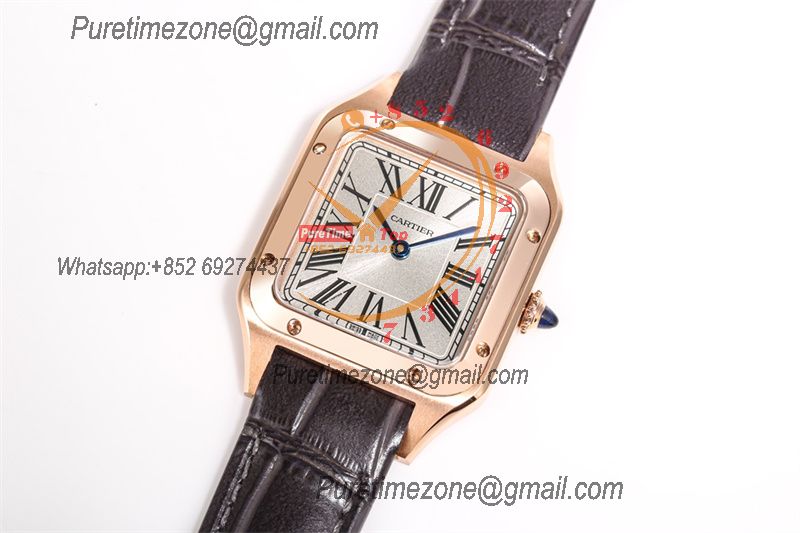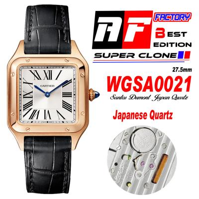 Home Cartier Santos de Cartier Santos Dumont WGSA0021 27.5mm Japan Quartz Womens Watch Best Edition AF Rose Gold Silver Dial Black Leather
