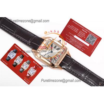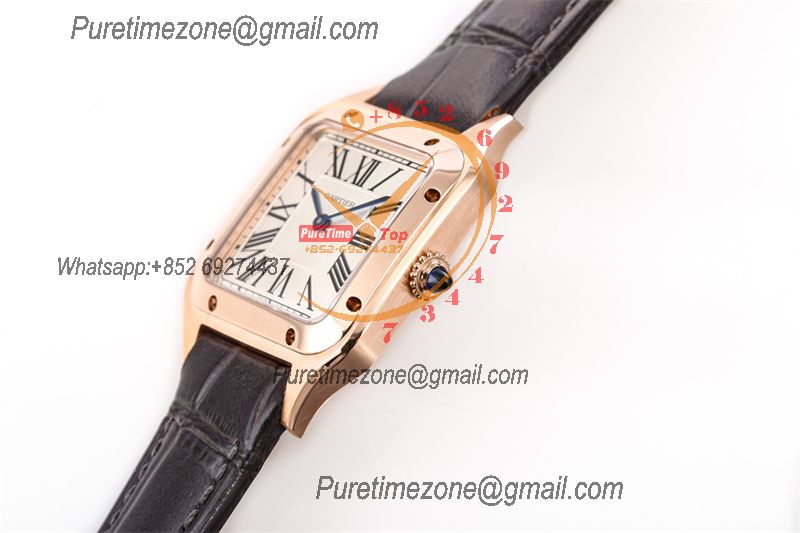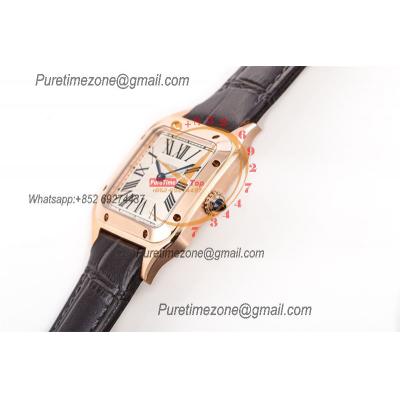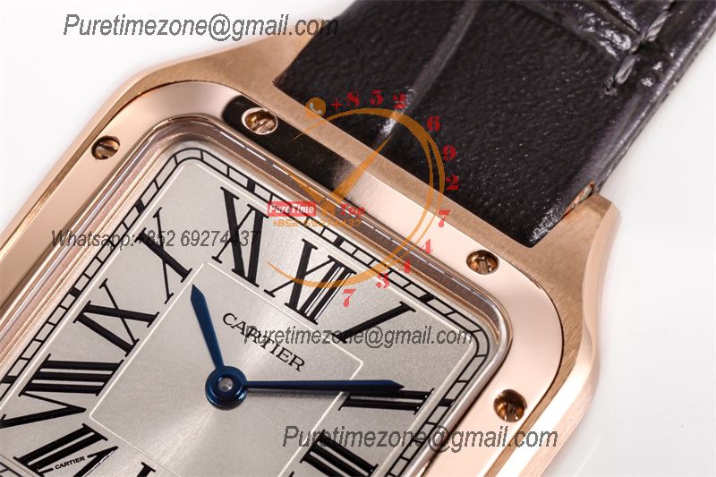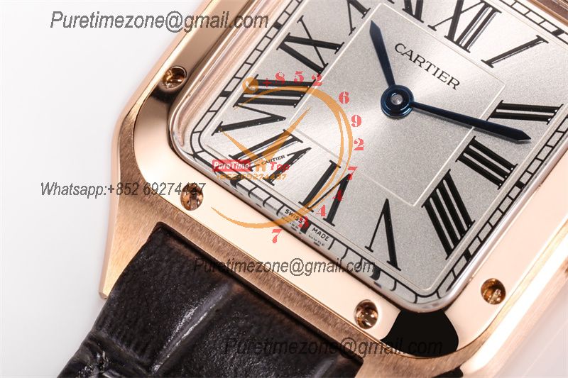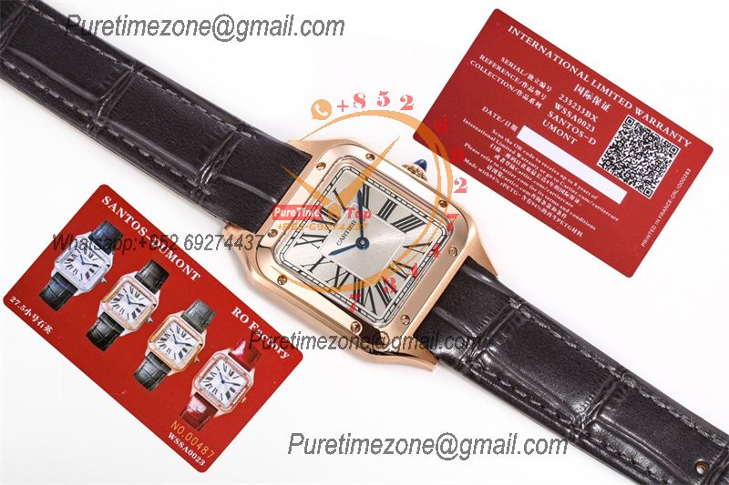 Santos Dumont WGSA0022 31.4mm Japan Quartz Womens Watch Best Edition AF Rose Gold Silver Dial Black Leather Strap