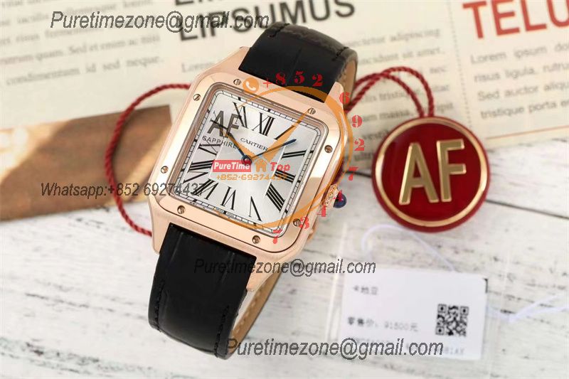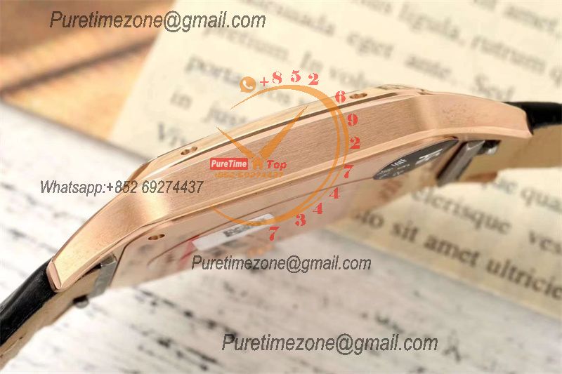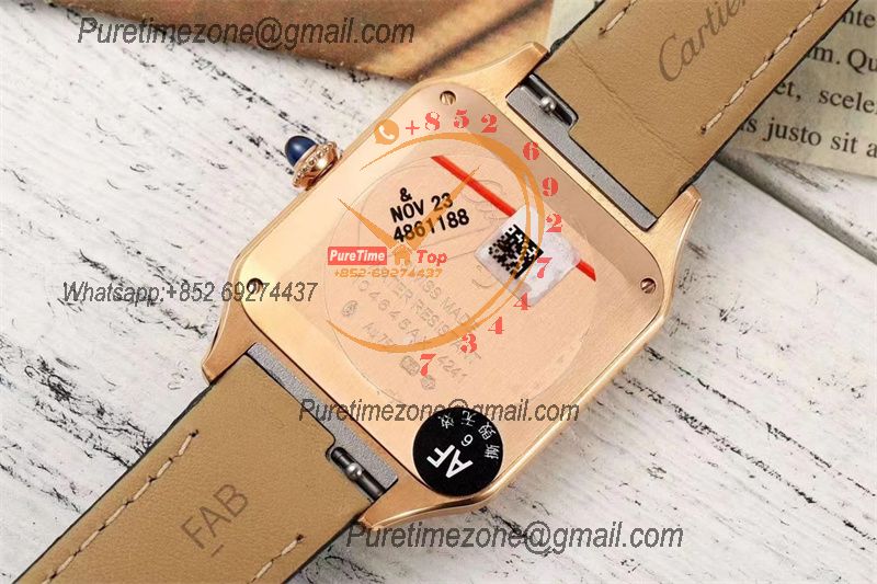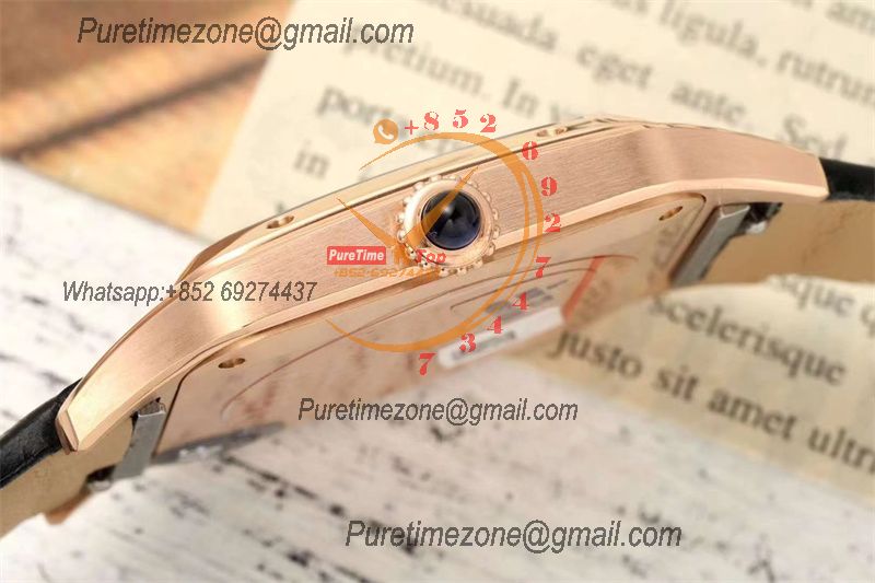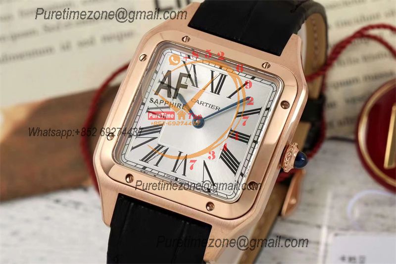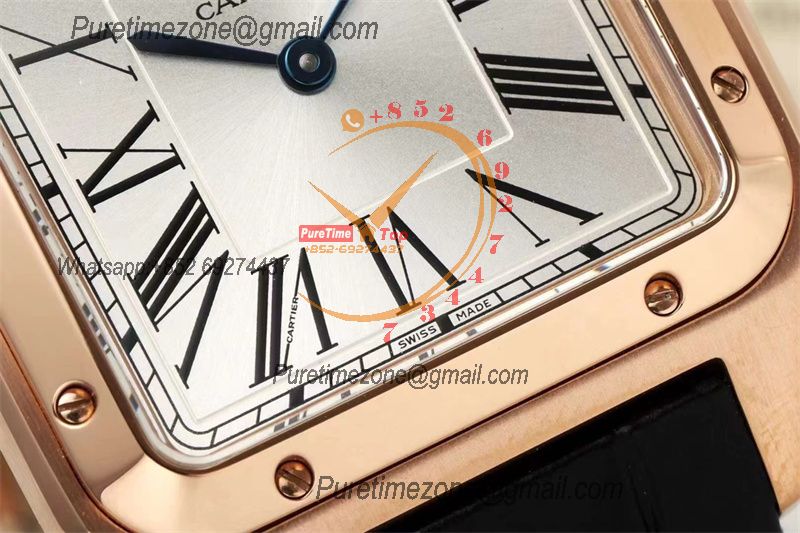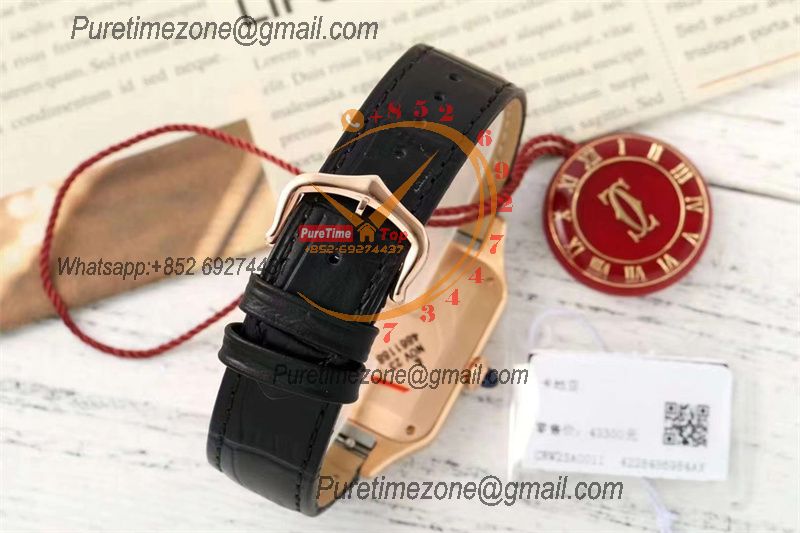 Santos Dumont WGSA0022 31.4mm Japan Quartz Womens Watch Best Edition AF Rose Gold Silver Dial Black Leather Strap