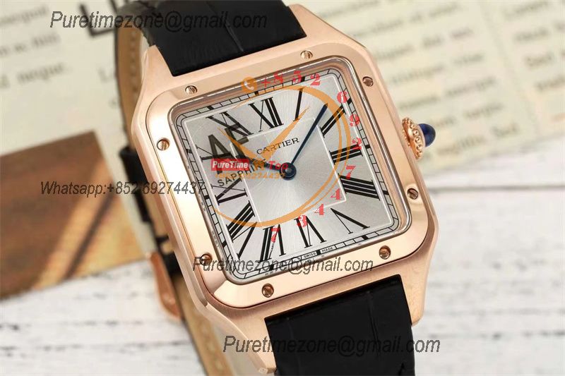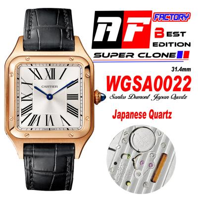 Home Cartier Santos de Cartier Santos Dumont WGSA0022 31.4mm Japan Quartz Womens Watch Best Edition AF Rose Gold Silver Dial Black Leather Strap
