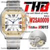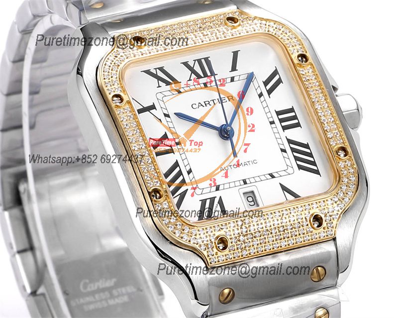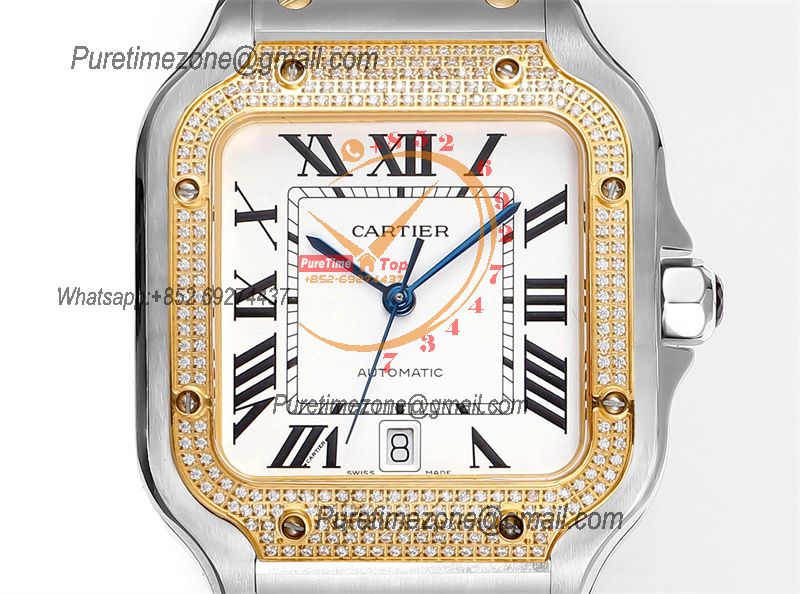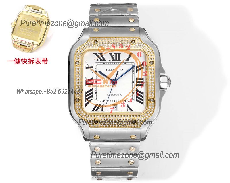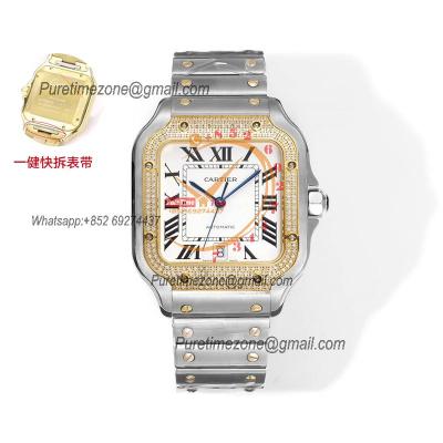 Santos W2SA0009 M9015 Automatic Mens Watch Best Edition BVF Large 39.8mm Two Tone RG White Dial SS Bracelet