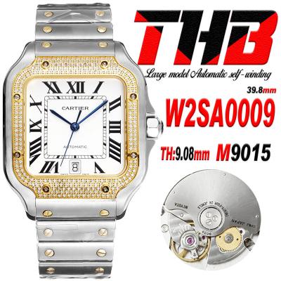 Santos W2SA0009 Large Model 39.8 M9015 Auto Mens Watch THBF Diamond Bezel YG White Dial SmartLink SS Bracelet