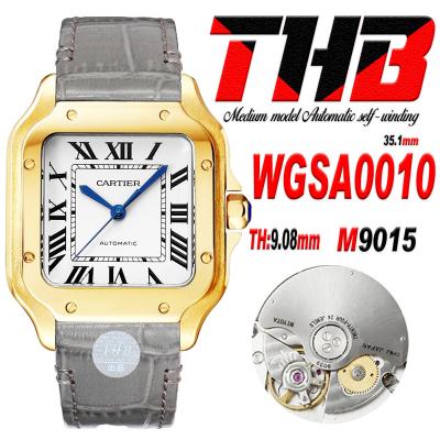 Home Cartier Santos de Cartier Santos WGSA0010 Medium Model 35.1mm M9015 Automatic Womens Watch Best Edition THBF YG White Dial Leather Ladies