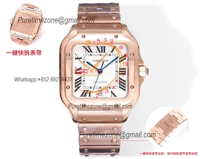 Home Cartier Santos de Cartier Santos WGSA0018 Large Model 39.8 M9015 Automatic Mens Watch Best Edition THBF RG White Dial SmartLink SS Bracelet