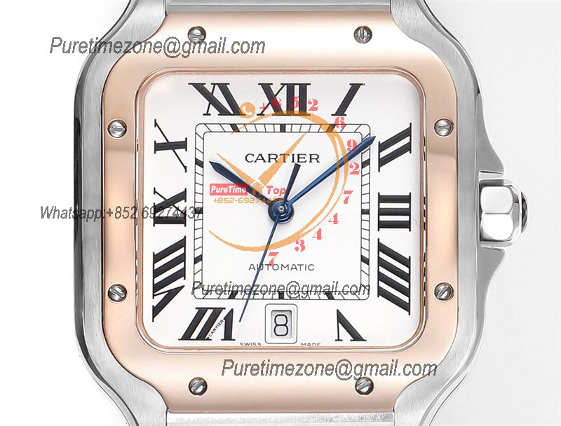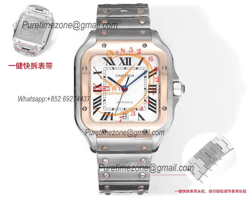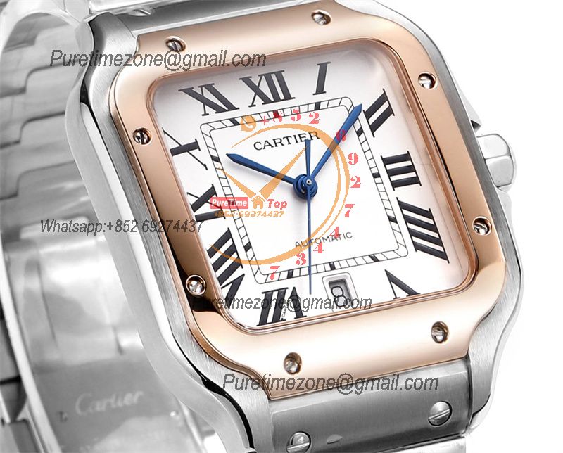 Santos W2SA0009 M9015 Automatic Mens Watch Best Edition BVF Large 39.8mm Two Tone RG White Dial SS Bracelet