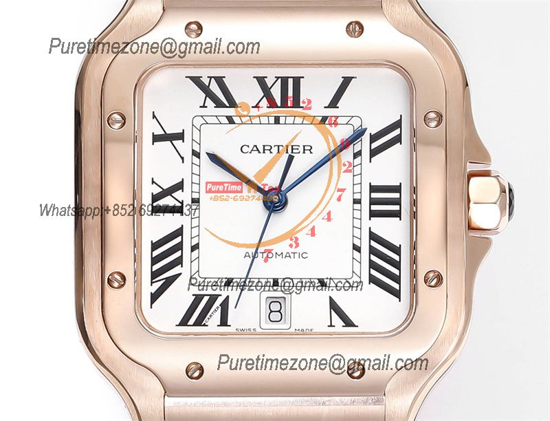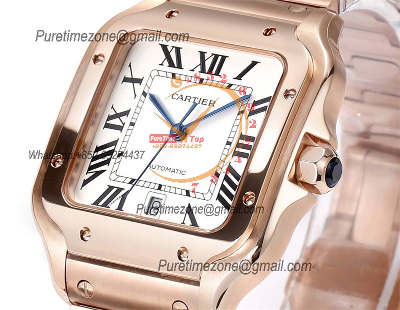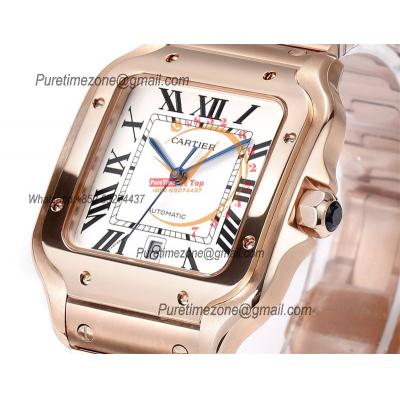Santos WGSA0018 M9015 Automatic Mens Watch Best Edition BVF Large 39.8mm Rose Gold White Dial SS Bracelet