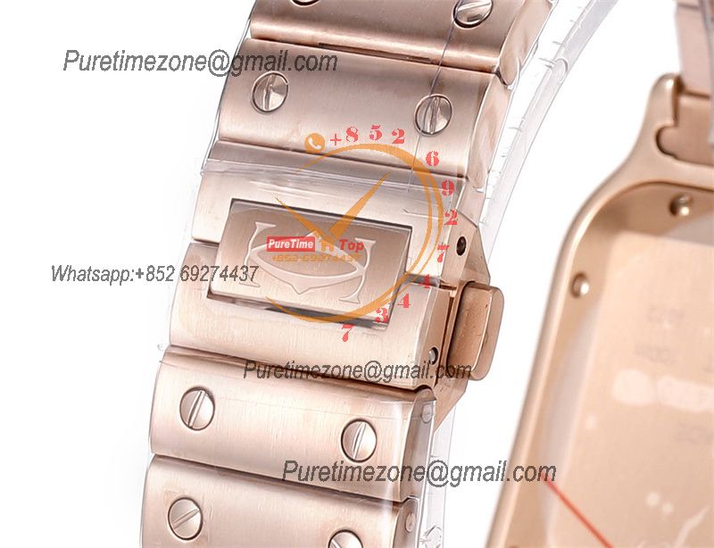 Santos Dumont WGSA0021 31.4mm Japan Quartz Womens Watch Best Edition AF Rose Gold Silver Dial Red Leather Strap